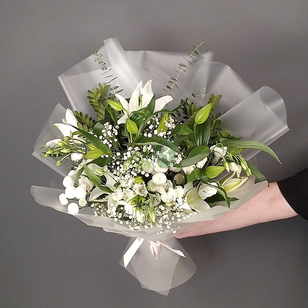 - Хризантема кустовая - 1 штука, цвет - белый;