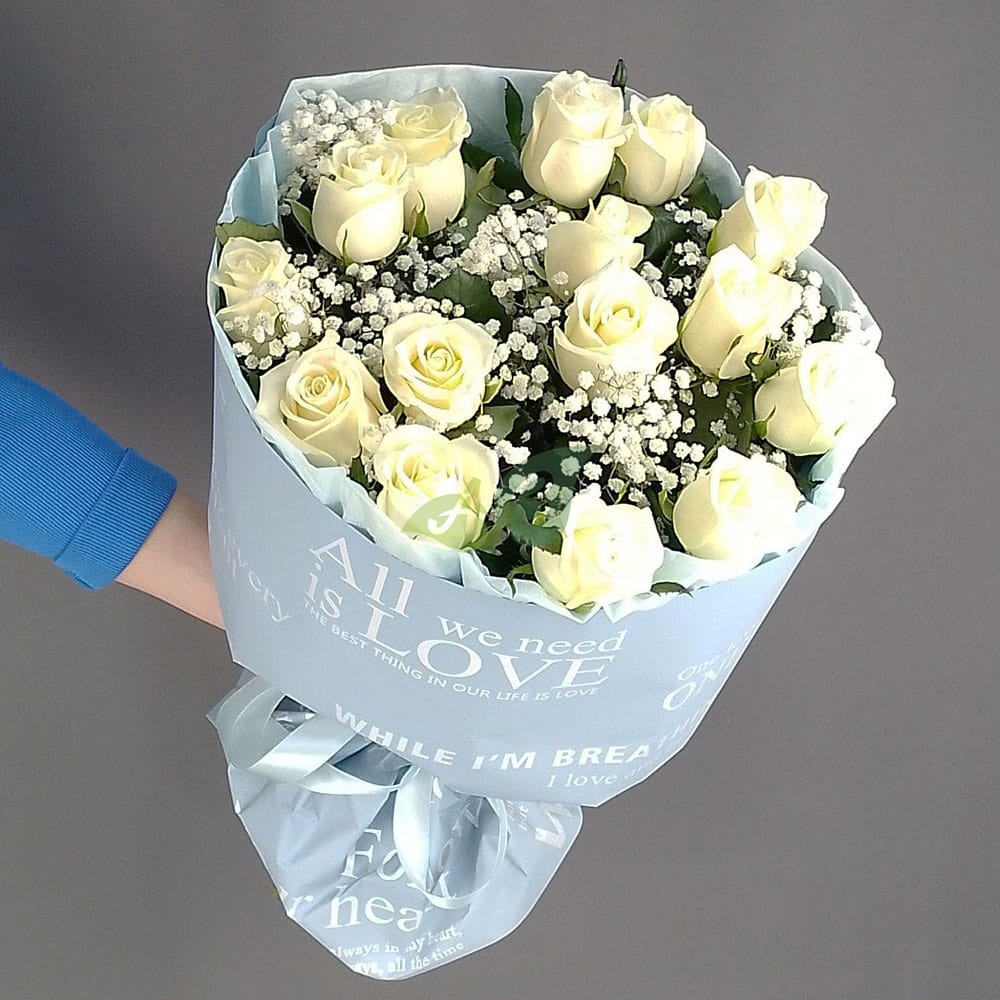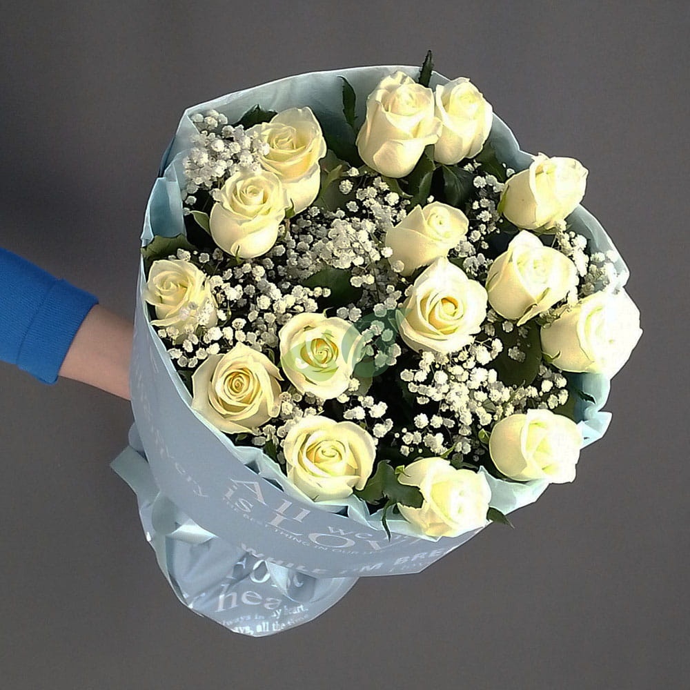 - Роза - 15 штук, цвет - белый;