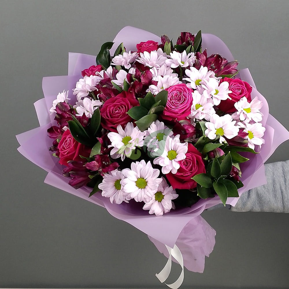 “Спелая вишня” – это невероятно красочный букет, который включает в себя розовые розы, нежно-сиреневую хризантему и фиолетовые альстромерии. Мы создали эту композицию, чтобы вы могли не думать, какие цветы заказать на 14 февраля. Она расскажет лучше слов о пылких чувствах и внесет яркие краски в холодный зимний день.